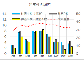 これまでの夏季実験で明らかとなった乾湿度と高山植物の関係を下表に示す。ホウオウシャジンやコマクサは乾燥気味の用土を好む。アツモリソウ辺りから中間帯に位置しているが、ツツジ・シャクナゲ等はは1000~1500に入っている。